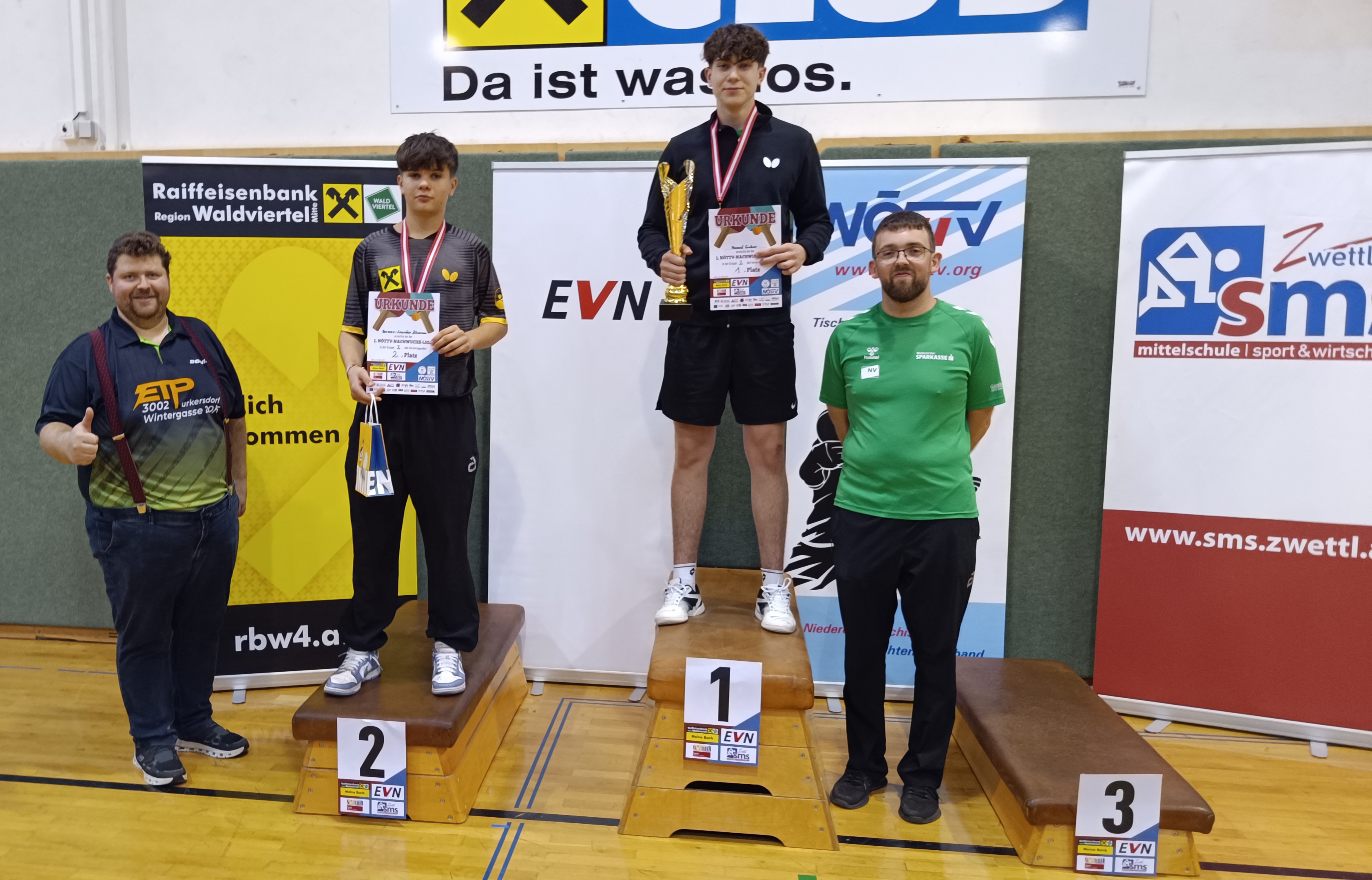 Die erste Serie der NWL wurde am 5.10.2025 von den Vereinen Union Tischtennisclub-Zwettl und Union Ottenschlag in der Neuen Mittelschule für Sport und Wirtschaft in Zwettl organisiert. Hermes-Leander Zitzmann vertrat als einziger Spieler den Verein Mistelbach.